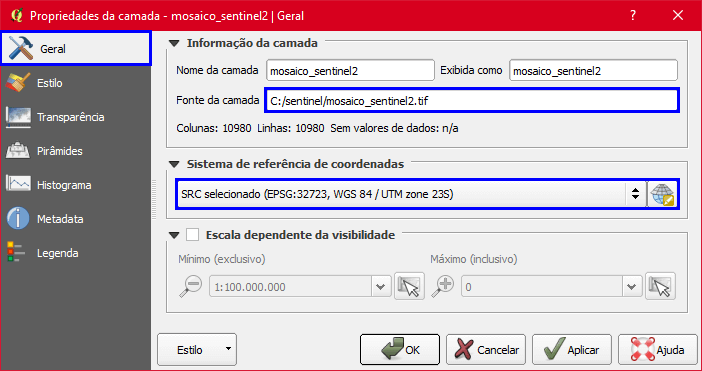 Truque: As imagens Sentinel-2 são entregues no elipsóide WGS 1984. Você pode consultar essa informação nas propriedades do raster.